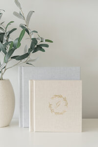 Handcrafted flushmount linen or leather album with ultra thick pages, lay-flat design, and archival paper.